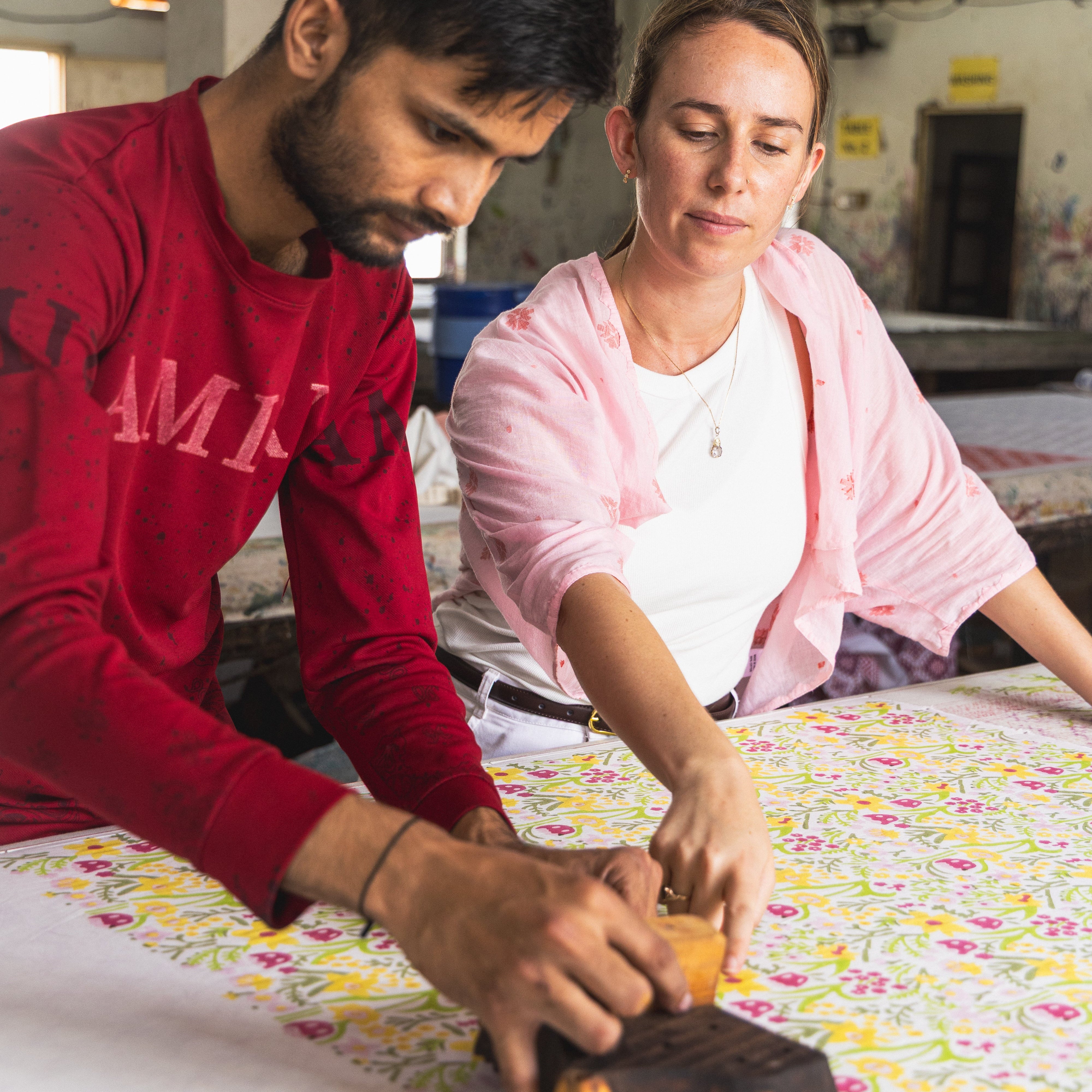 המוצרים שלנו מודפסים בעבודת יד באמצעות טכניקת "בלוקפרינט״ העתיקה. הדוגמאות מגולפות בסבלנות וכישרון רב על בלוקים של עץ ולאחר מכן מודפסות בזו אחר זו על הבד, מה שיוצר דפוסים ייחודיים ויפהפיים בכל פריט.