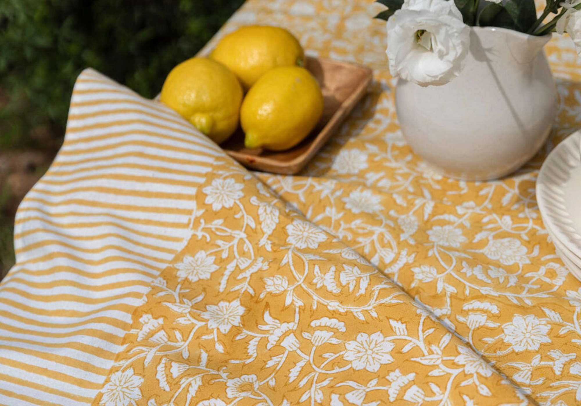 המוצרים שלנו מודפסים בעבודת יד בשיטת "בלוקפרינט״ העתיקה. הדוגמאות מגולפות בסבלנות וכישרון רב על בלוקים של עץ ולאחר מכן מודפסות בזו אחר זו על הבד, מה שיוצר דפוסים ייחודיים ויפהפיים בכל פריט.